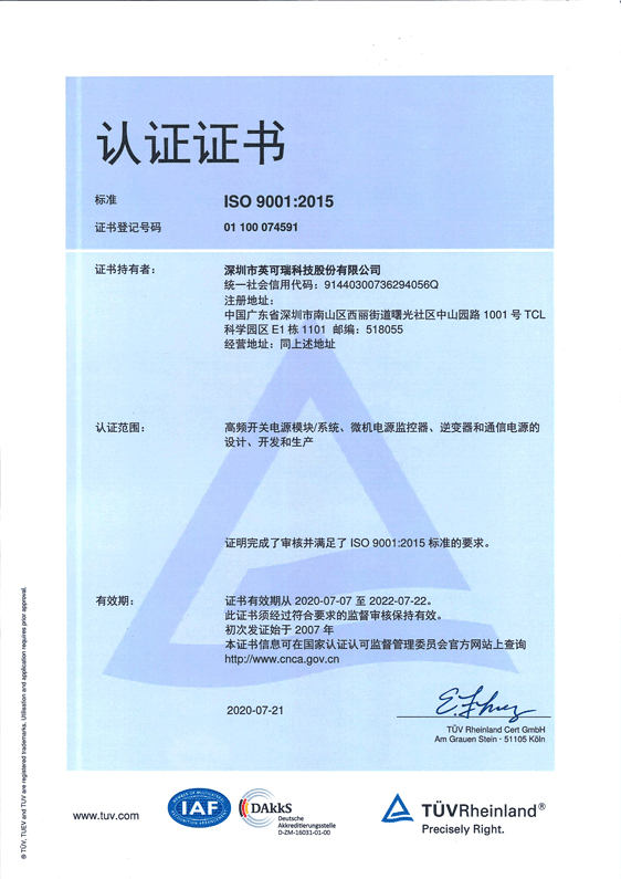 深圳市英可瑞科技股份有限公司成立于2002年,為國家高新技術企業,2017年11月1日在創業板順利上市(股票代碼:300713)。專注于電力電子產品的研發、生產和銷售,定位服務于中高端直流電源系統制造商,以擁有自主知識產權為基礎,在經營過程中堅持走自主研發,技術創新的道路,為客戶提供設備配套及其服務,實現企業價值與客戶價值共同成長。