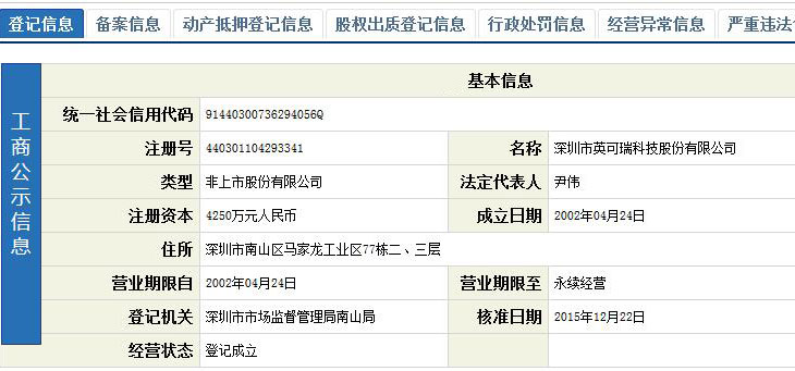 2015年12月22日,深圳市工商管理局正式下發批文,我公司股份制改造成功。即日起,“深圳市英可瑞科技開發有限公司”正式更名為“深圳市英可瑞科技股份有限公司”。